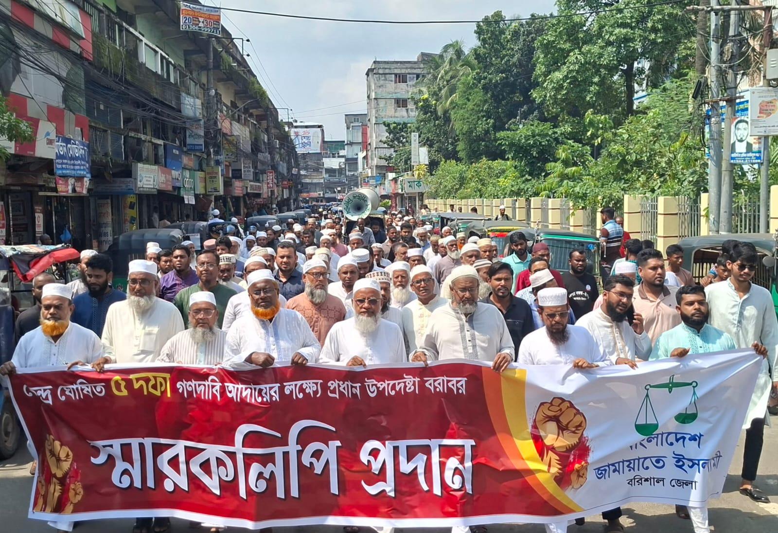 সরকারের ঘোষনা অনুযায়ী আগামী ফেব্রুয়ারিতে অনুষ্ঠিতব্য জাতীয় নির্বাচনের পূর্বে জুলাই জাতীয় সনদ বাস্তবায়ন আদেশ জারি ও এর উপরে গণভোট আয়োজনসহ ৫ দফা বাস্তবায়নের দাবিতে বরিশাল জেলা জামায়াতে ইসলামীর আয়োজনে বিক্ষোভ মিছিল ও স্মারকলিপি প্রদান করা হয়েছে।