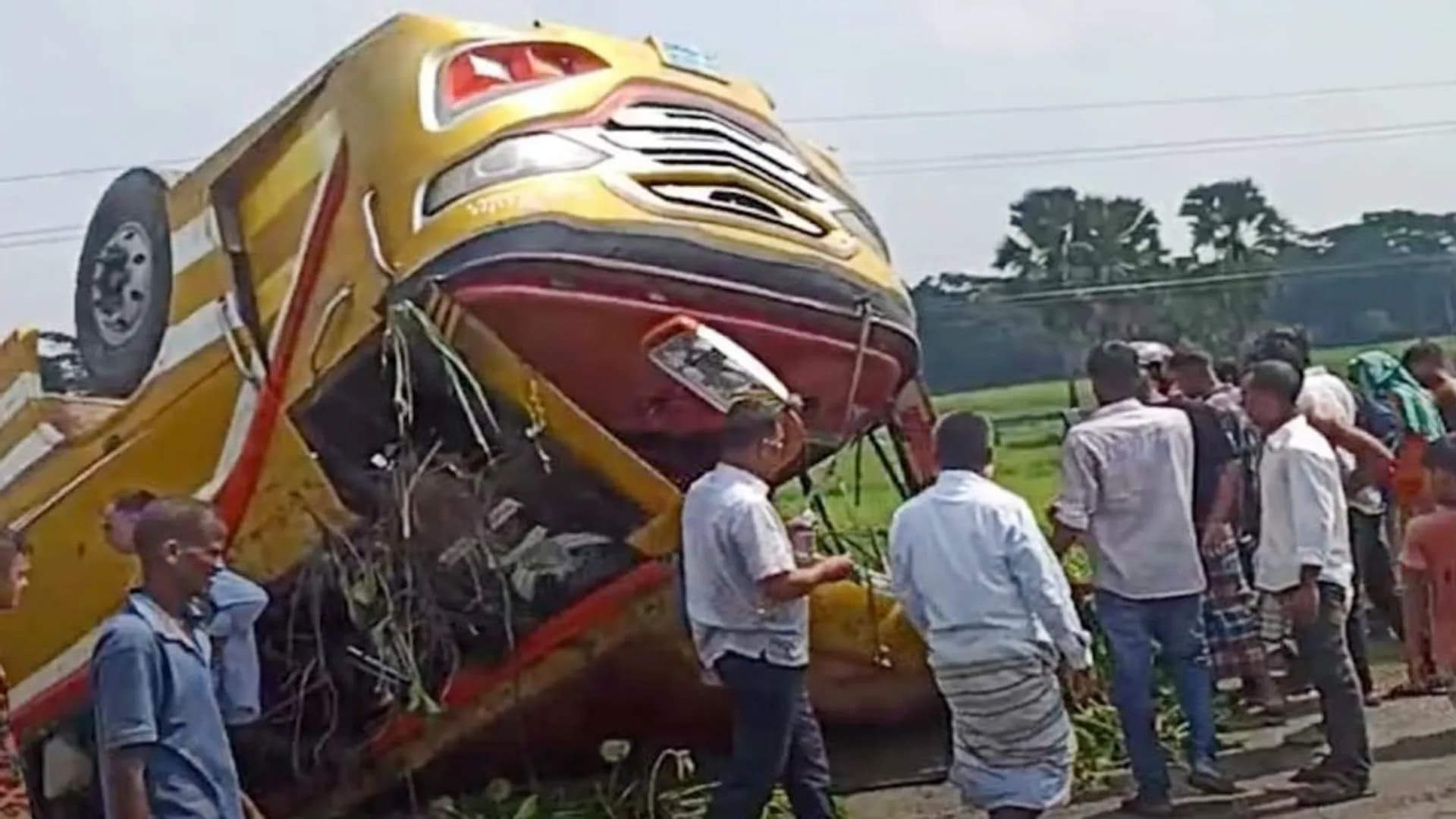 ভাঙ্গা হাইওয়ে থানার ভারপ্রাপ্ত কর্মকর্তা (ওসি) রোকিবুজ্জামান সাংবাদিকদের বলেন, ‘ঢাকা থেকে বরিশালগামী ইউরো লাইন নামের একটি পরিবহন বাস ও শ্যামলী পরিবহন একে অপরকে ওভারটেকিং করছিল। সে সময় শ্যামলী পরিবহনের ধাক্কায় ইউরো লাইন বাসটি নিয়ন্ত্রণ হারিয়ে পানিভর্তি খাদে উল্টে যায়।